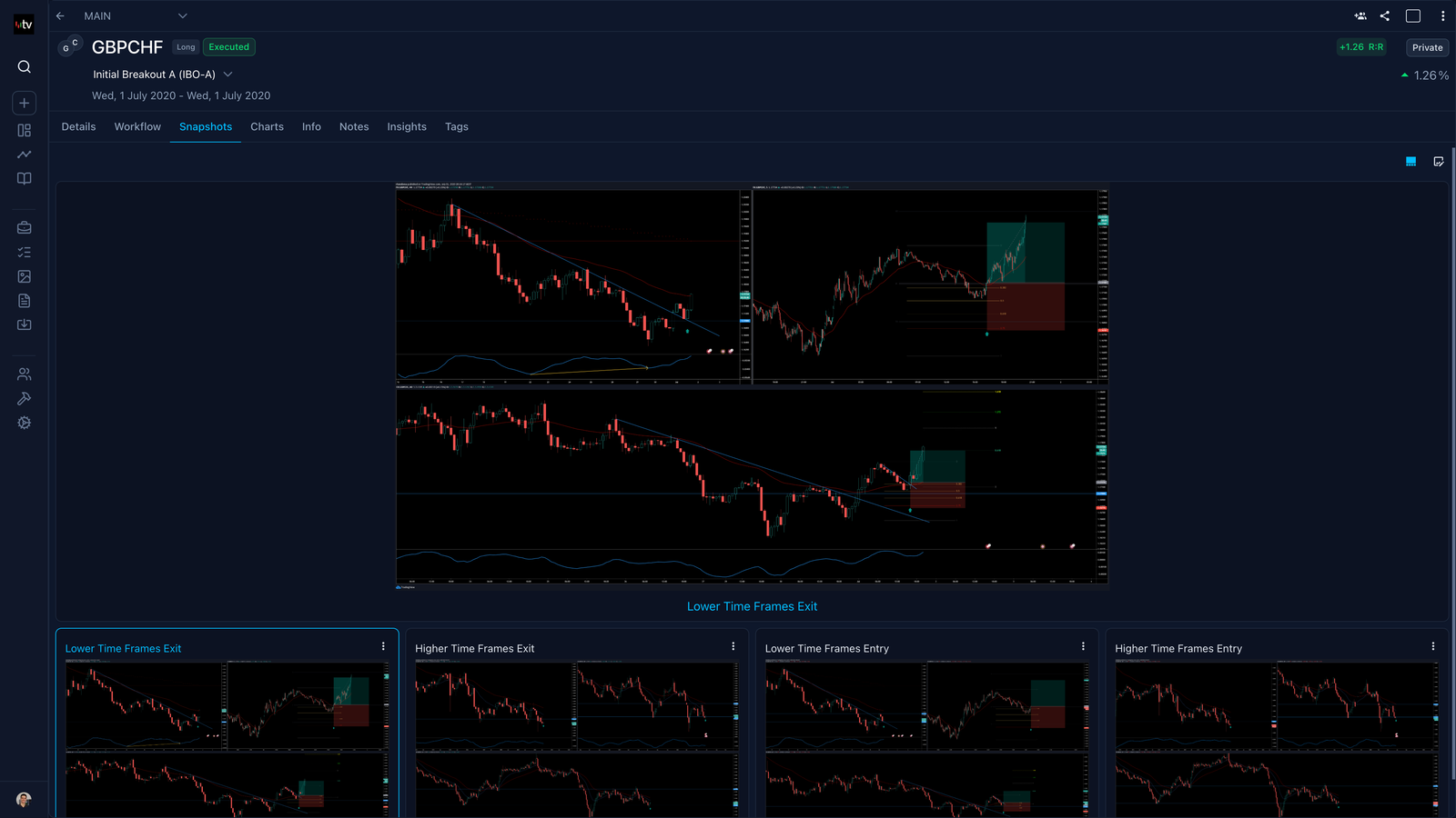 Capture each phase of your trades visually with organized snapshots, providing clear insight into entries, exits, and beyond.